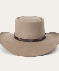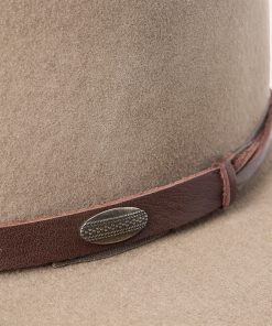 This western-inspired fashion hat brings a welcome pop of Cowboy Core to any look. Its bold silhouette features a statement-making 3 1/2″ telescope crown, 3 1/2” downturn brim and leather hat band with silver-tone conchos. Handmade in the U.S.A. with a firm finish from high-quality wool felt, it’s finished with a faux leather sweatband and satin liner for a comfortable, all-day fit.