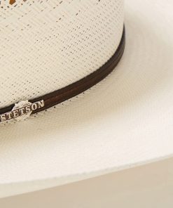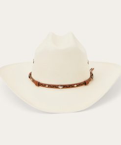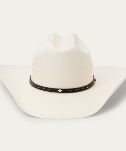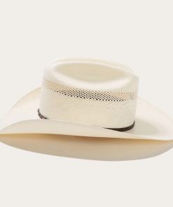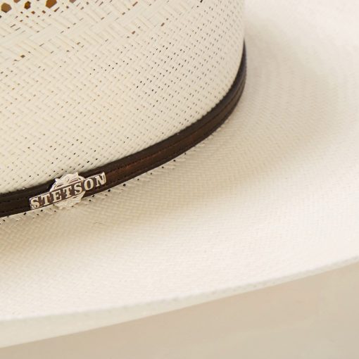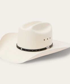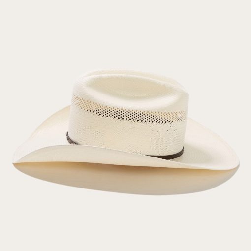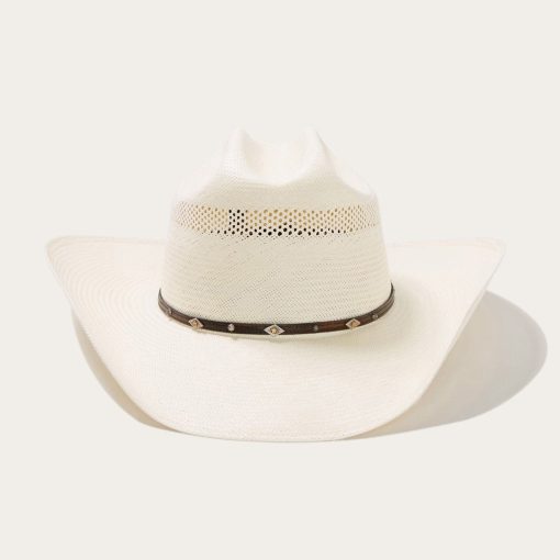 Our best-selling Lobo combines legendary quality and classic western style in one timeless package. Handwoven one strand at a time in the U.S.A. from 10X quality shantung straw, which is prized for its durability and lightweight feel, it has a 4 ⅛” cattleman crown, 4 ¼” medium curved brim and a leather hatband with two-tone star studs and silver-tone conchos. All-around venting in the crown allows extra circulation and a genuine leather sweatband ensures a time-tested, comfortable fit.