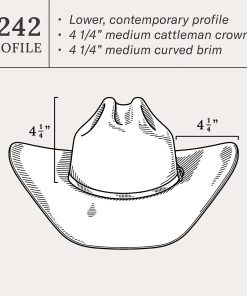 Handmade in the U.S.A. of durable, weather-resistant 4X Quality Wool Felt, the Mason 4X features a 4 ¼” brim and 4 ¼” cattleman crown finished with a matching wool felt hat band and silver-tone rowell concho. A genuine leather sweatband and full satin liner provide a secure and comfortable fit. Fit for long days on the range, our 4X quality buffalo hats are imbued with a Western spirit and fit for long days on the range. Includes an original Stetson hat box.