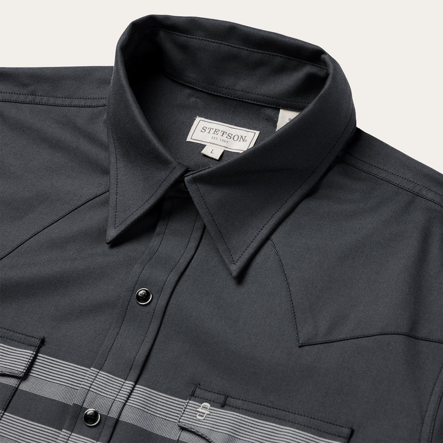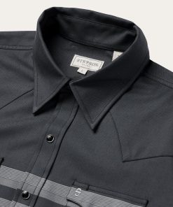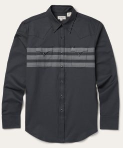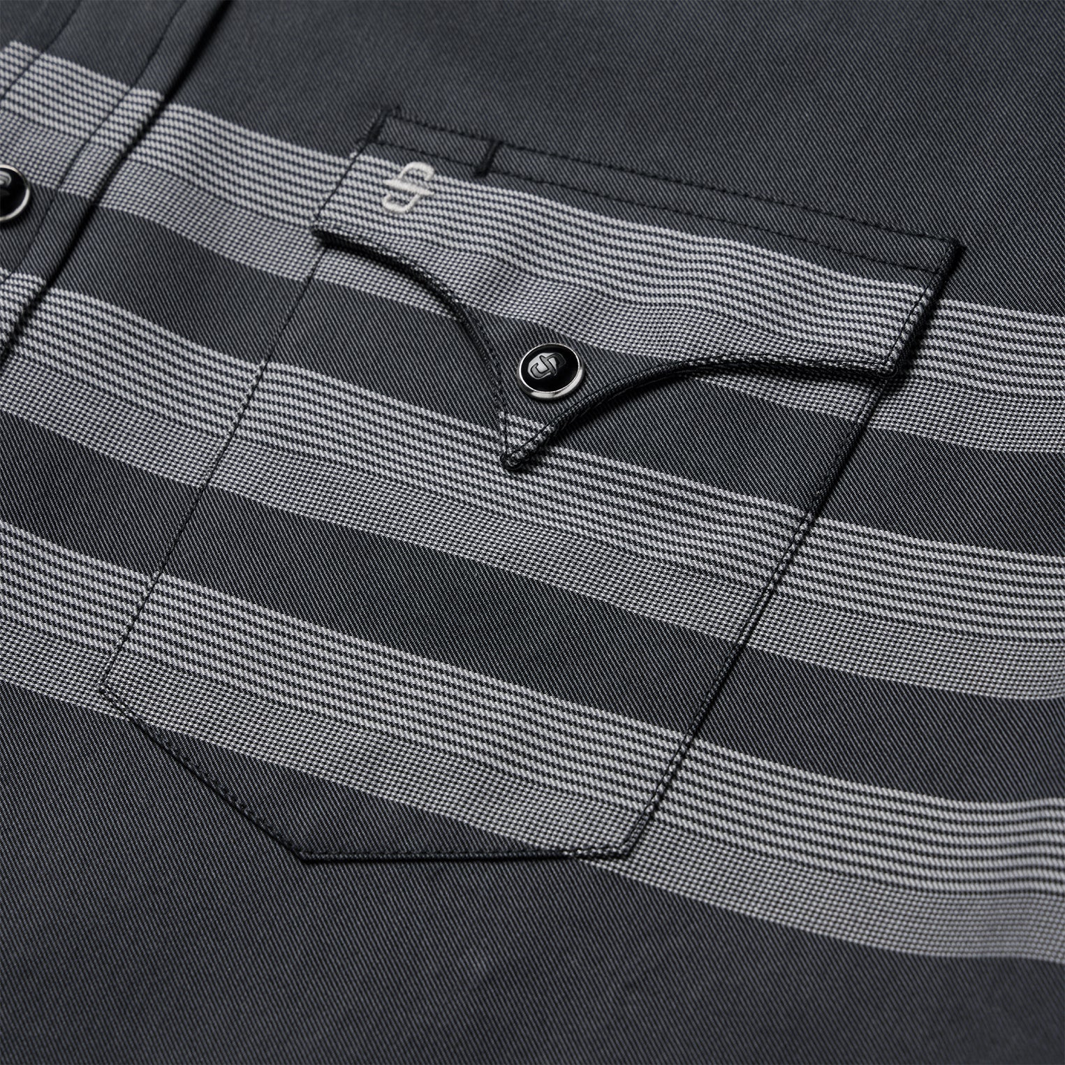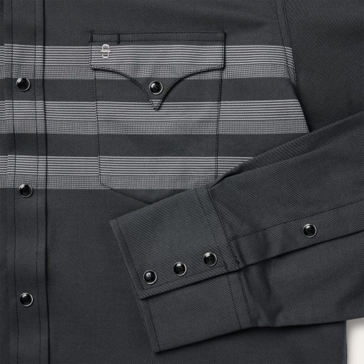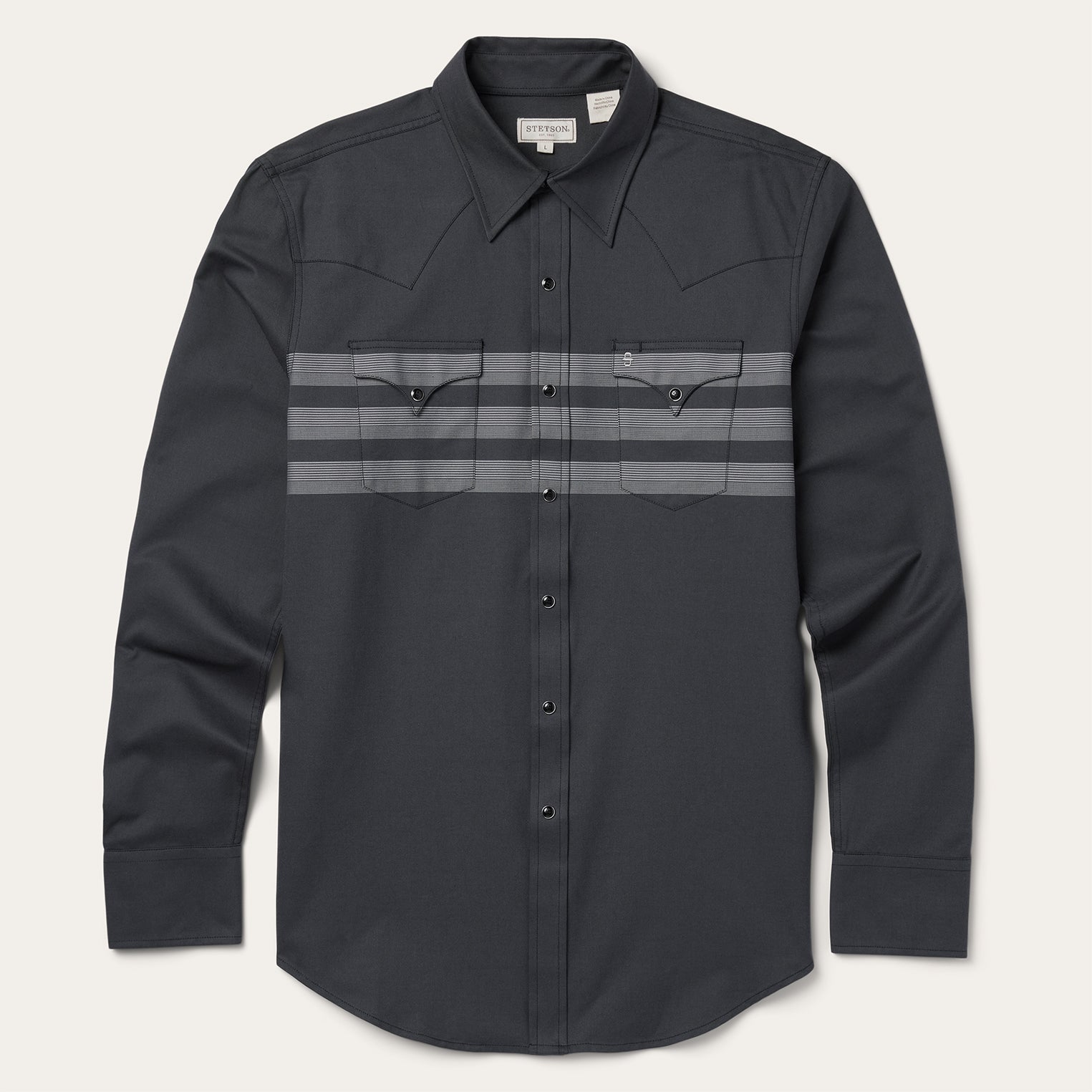 This snap-front western shirt is crafted from durable 100% cotton twill and features a woven horizontal Border Stripe pattern. Cut trim for a modern fit, it has a one point front yoke, ultra deep curved back yoke and three-snap cuffs.Pearl logo snaps and subtle embroidery on the pocket and cuff complete the design and speak to our commitment to quality. Hard-wearing and built to last, our western shirts are defined by their rugged, practical, timeless style.
