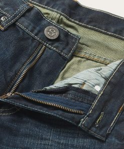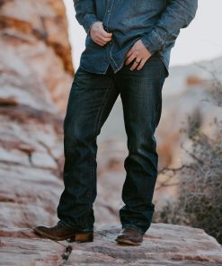 Rugged, timeless, practical. These dark wash jeans are cut with a classic, universally flattering fit with a low rise, and they’re relaxed through the thigh before ending in a boot cut leg. The premium denim is naturally tough, and has been hand-sanded, whiskered and tacked for a comfortable feel and authentically worn-in look that only gets better over time.