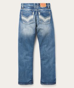Rugged, timeless, practical. These light wash jeans are cut with a classic, universally flattering fit with a low rise, and they’re relaxed through the thigh before ending in a boot cut leg. The premium denim is naturally tough, and has been hand-blasted, deconstructed, whiskered and tacked for a comfortable feel and authentically worn-in look that only gets better over time.