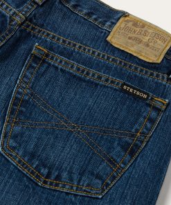 The 1520 Fit Standard Straight Leg jeans are crafted from high-quality 100% cotton denim with a classic wash for a traditional look. The 5-pocket style is cut with a mid rise, the leg is relaxed through the thigh, with a bootleg opening. Additional features include a button fly with Stetson branded buttons, contrast top stitching and decorative “X” seaming on the back pockets. Made to last and built to be broken in, this is quality denim you can rely on.