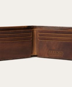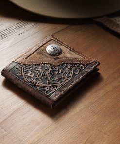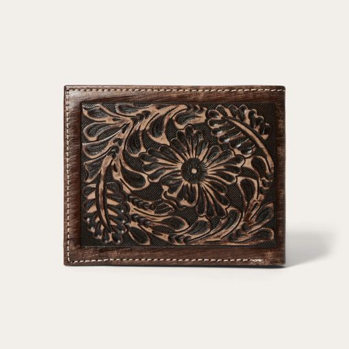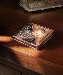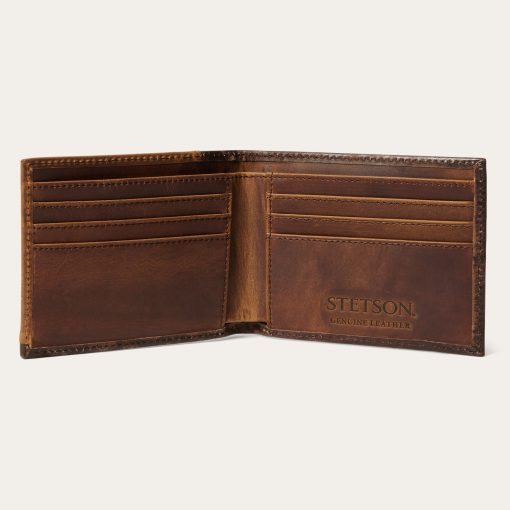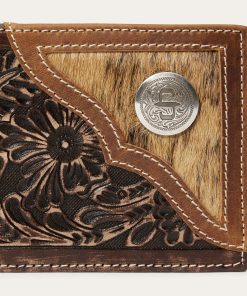 Made from top-grain leather, this bi-fold wallet features vintage brown tooled, hand-sanded brown leather with a brindle hair-on-hide inlay and silver-tone Stetson concho. At once rugged and refined, each of our wallets embodies our legendary commitment to quality and attention to detail.