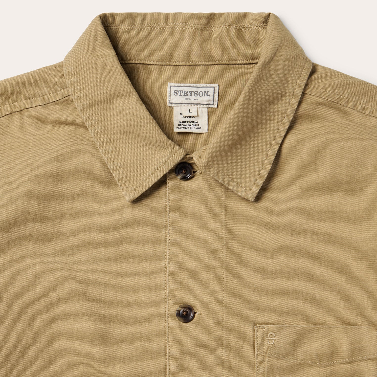 This rugged, versatile button-front shirt jacket is made with a durable, high-quality cotton canvas that has just enough stretch for freedom of movement on any adventure. Its classic western-inspired style features a straight back yoke, one open chest pocket and two large open hand pockets. It’s finished with a one button cuff and a straight hem. At Stetson, we’ve been outfitting men who venture into harsh, weather-worn territories since 1865—this is quality you can rely on.