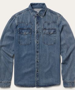 This retro western shirt makes a statement with its throwback style and authentic details. It has fancy front and back yokes, one-point pockets with flaps and subtle Stetson embroidery on the chest and right cuff placket. Its classic snap front and two-snap cuff feature attention-getting pearl octagon snaps. Cut in our standard fit for a traditional silhouette that allows for freedom of movement and crafted from high-quality 100% lyocell denim.