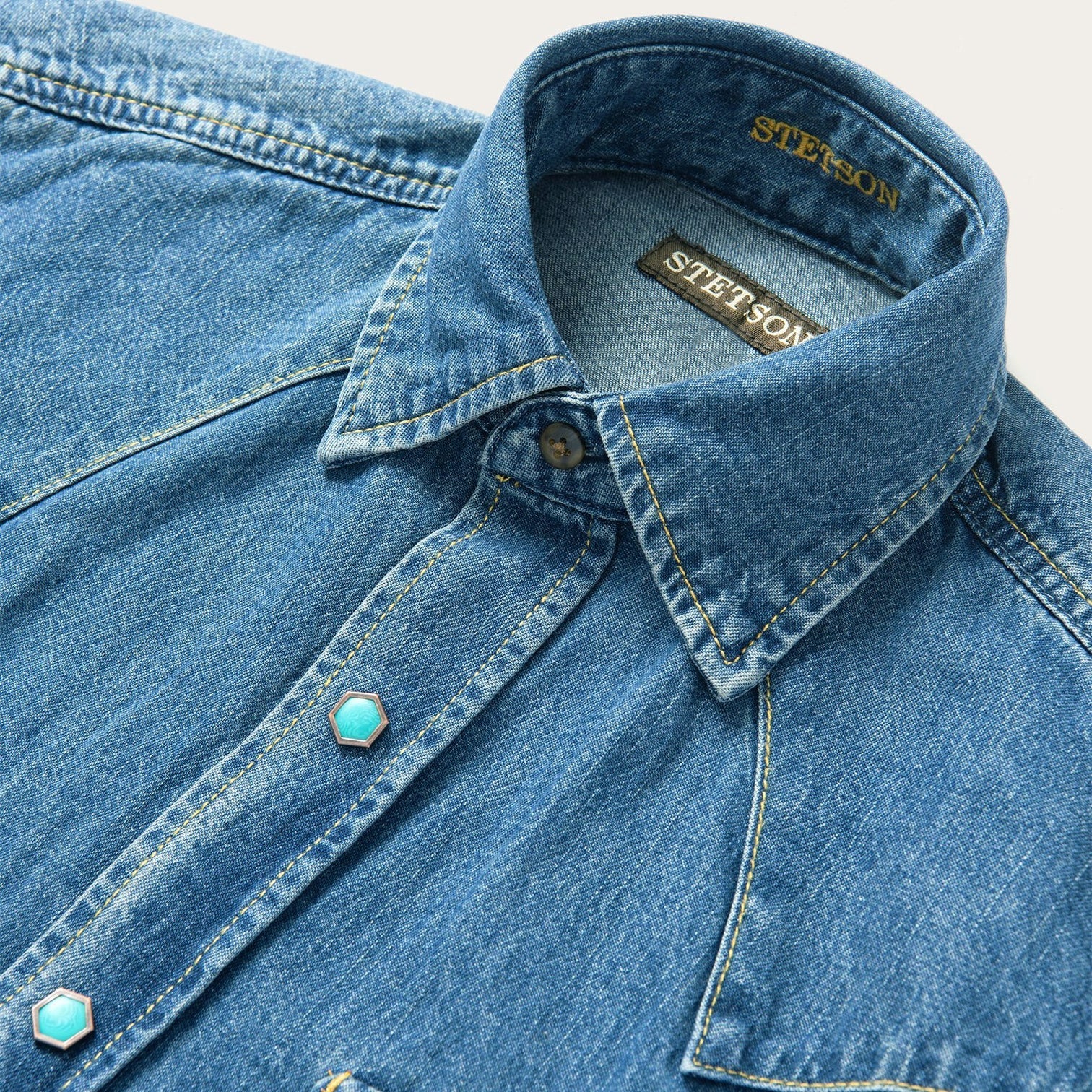 Iconic Western details include Stetson-branded turquoise snap buttons on the front placket, cuffs, and pockets, as well as custom embroidery on the chest and right cuff. Exceedingly durable and always comfortable, it’s an all-occasion essential.