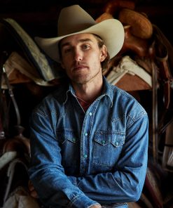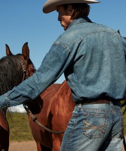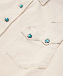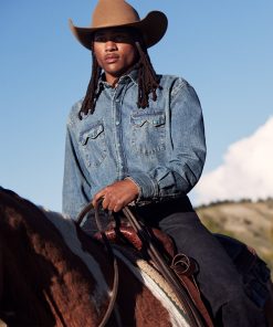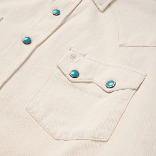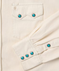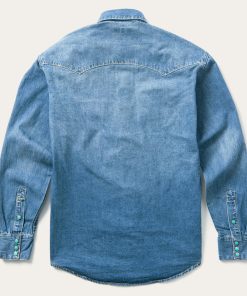 This premium western shirt is crafted from rugged, durable 100% cotton denim and features signature turquoise hexagon snaps with copper rims that are designed to make a statement wherever you go. Its authentic style details include deep curved front yokes, a two-point back yoke, two patch chest pockets with sawtooth flaps and snap closure, subtle Stetson embroidery on the chest and right cuff placket, a classic snap front and three-snap roper cuffs (originally invented as a convenient way for cowboys to roll up their sleeves while roping cattle). Constructed with triple needle stitching for toughness, it has a classic loose cut that allows for freedom of movement, and like all of our true blue denim shirts, it will only get more comfortable with time and wear.