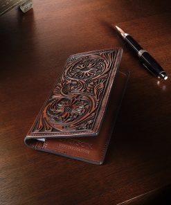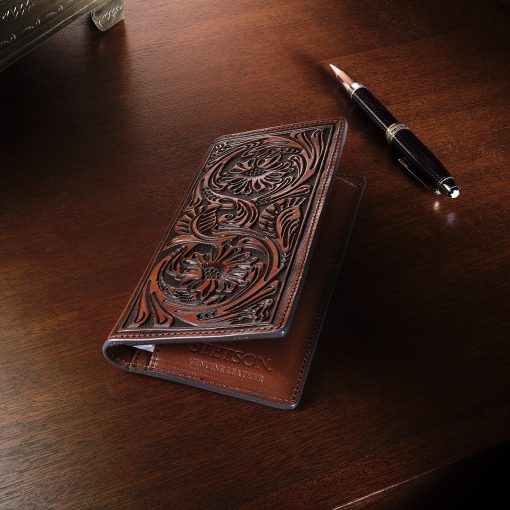 Made from top-grain leather, this checkbook wallet features brown tooled veg tan leather. At once rugged and refined, each of our wallets embodies our legendary commitment to quality and attention to detail.