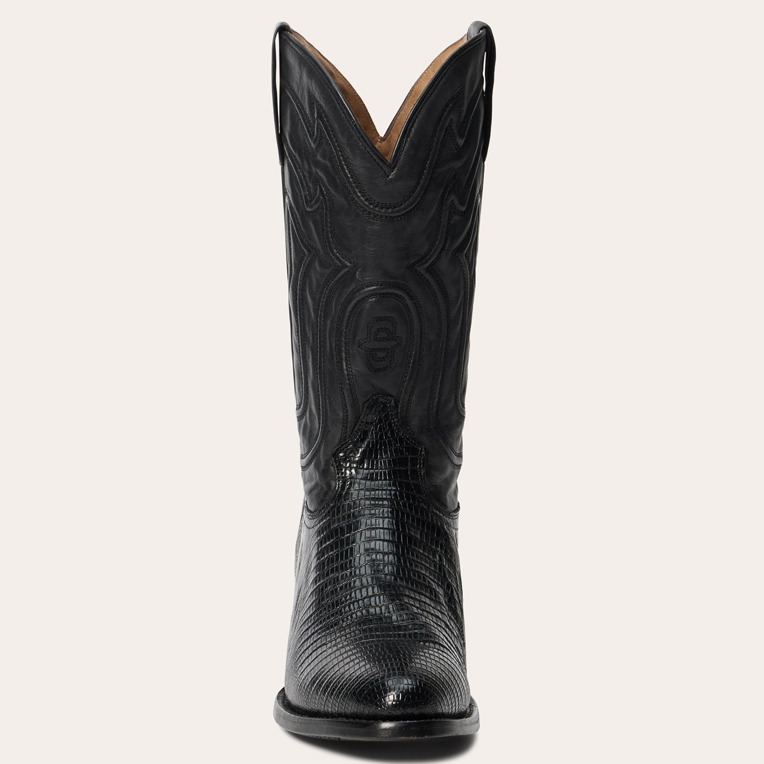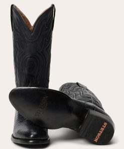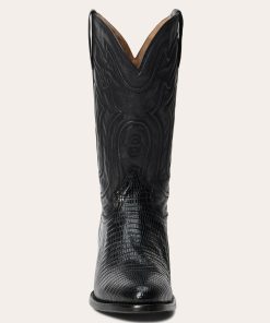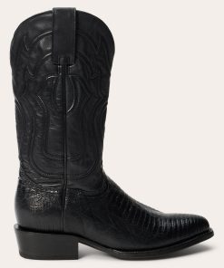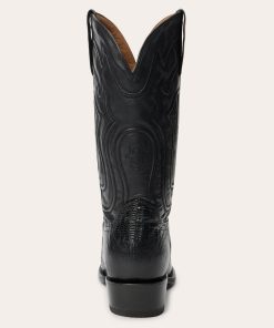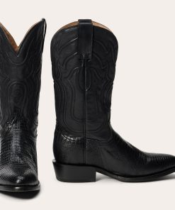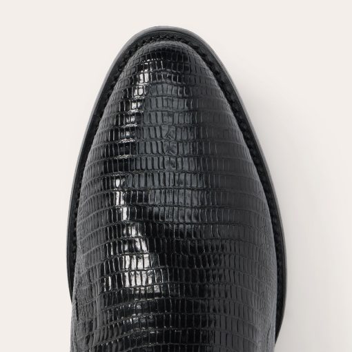 The Wayne Teju Boot combines a traditional western silhouette with statement-making exotic materials. It features a genuine teju vamp and a 13” leather corded shaft and features an R toe—a classic all-purpose style that also dresses up well—as well as a stacked leather cowboy heel. Its quality construction includes 3⁄4 welt soles, brass nails and handmade lemonwood pegs that will expand and contract with any moisture the boot may encounter. Premium leather lining and a removable Tru-X insole ensure comfort in every step.