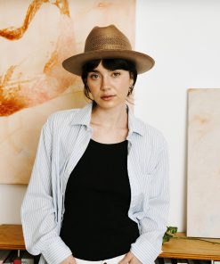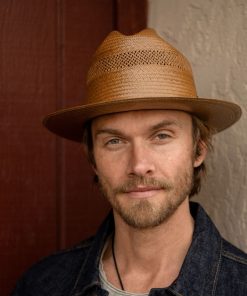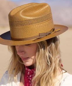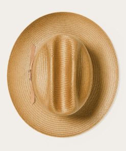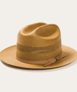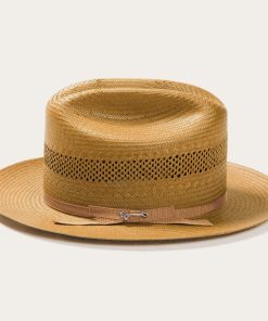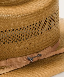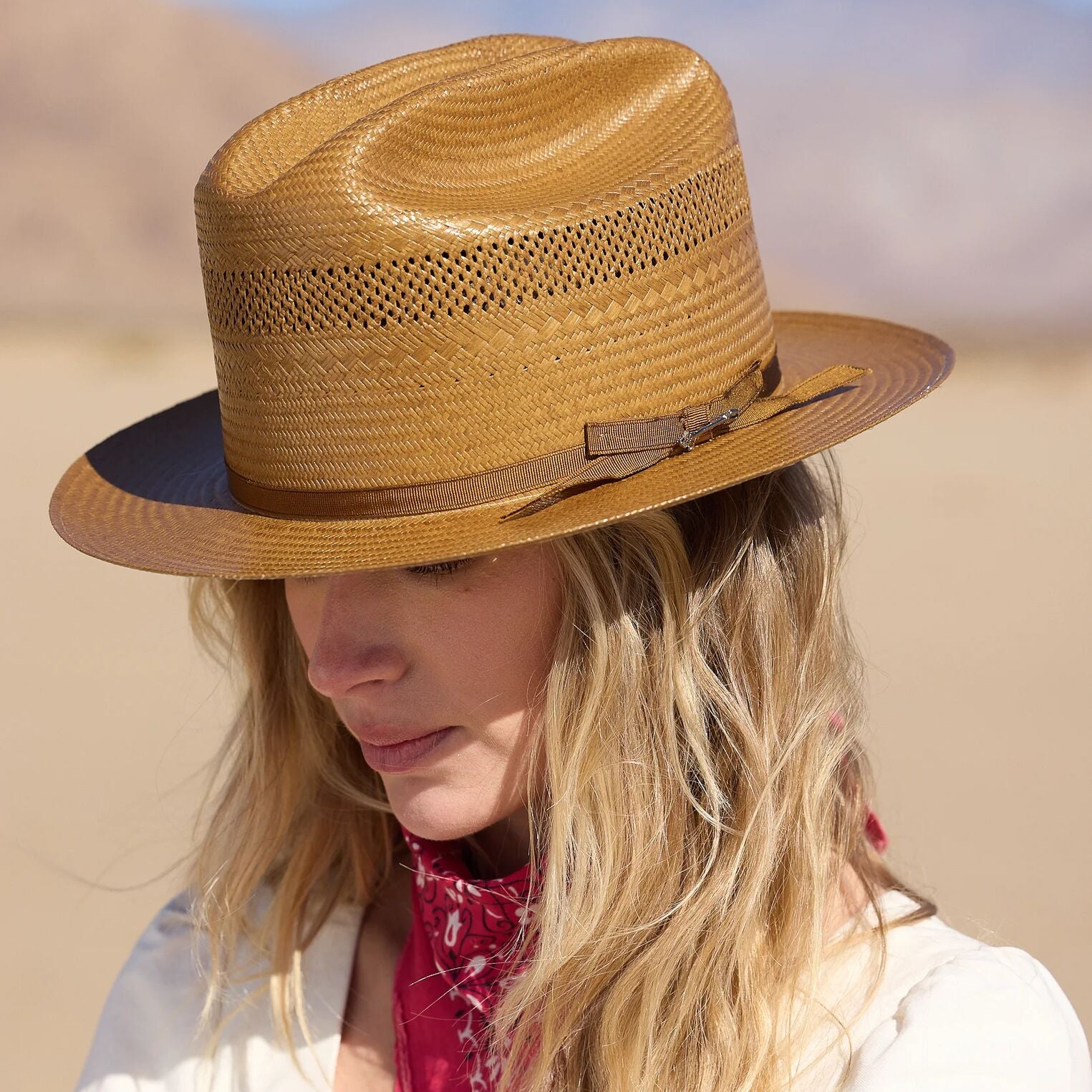 The Open Road Straw features a genuine leather sweatband and a 4 ¼” crown outfitted with a satin hat band.