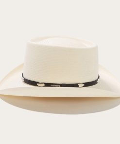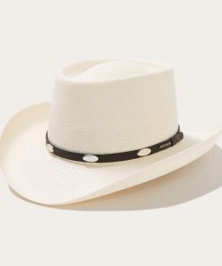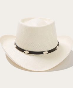 Handmade in the U.S.A., the Royal Flush 10X Straw Cowboy Hat has a 3” brim and a 3 7/8” gambler crown. Its rugged western style is enhanced by a studded leather hat band and a genuine leather sweatband ensures a secure fit and all-day comfort.
