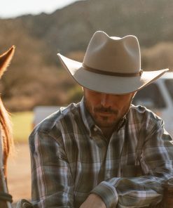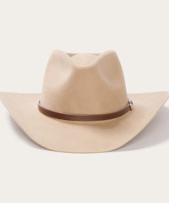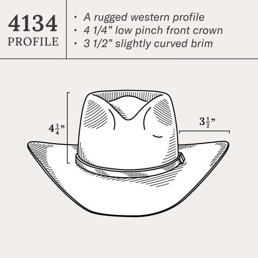 Durable and water-repellent for long days on the range, the Seneca 4X Cowboy Hat is constructed of 4X quality buffalo fur felt and features a pinch front crown, interior leather sweatband and a tooled leather hat band accented with a silver buckle set. A member of Stetson’s Buffalo Collection — Western hats handmade with the finest all-natural buffalo fibers.