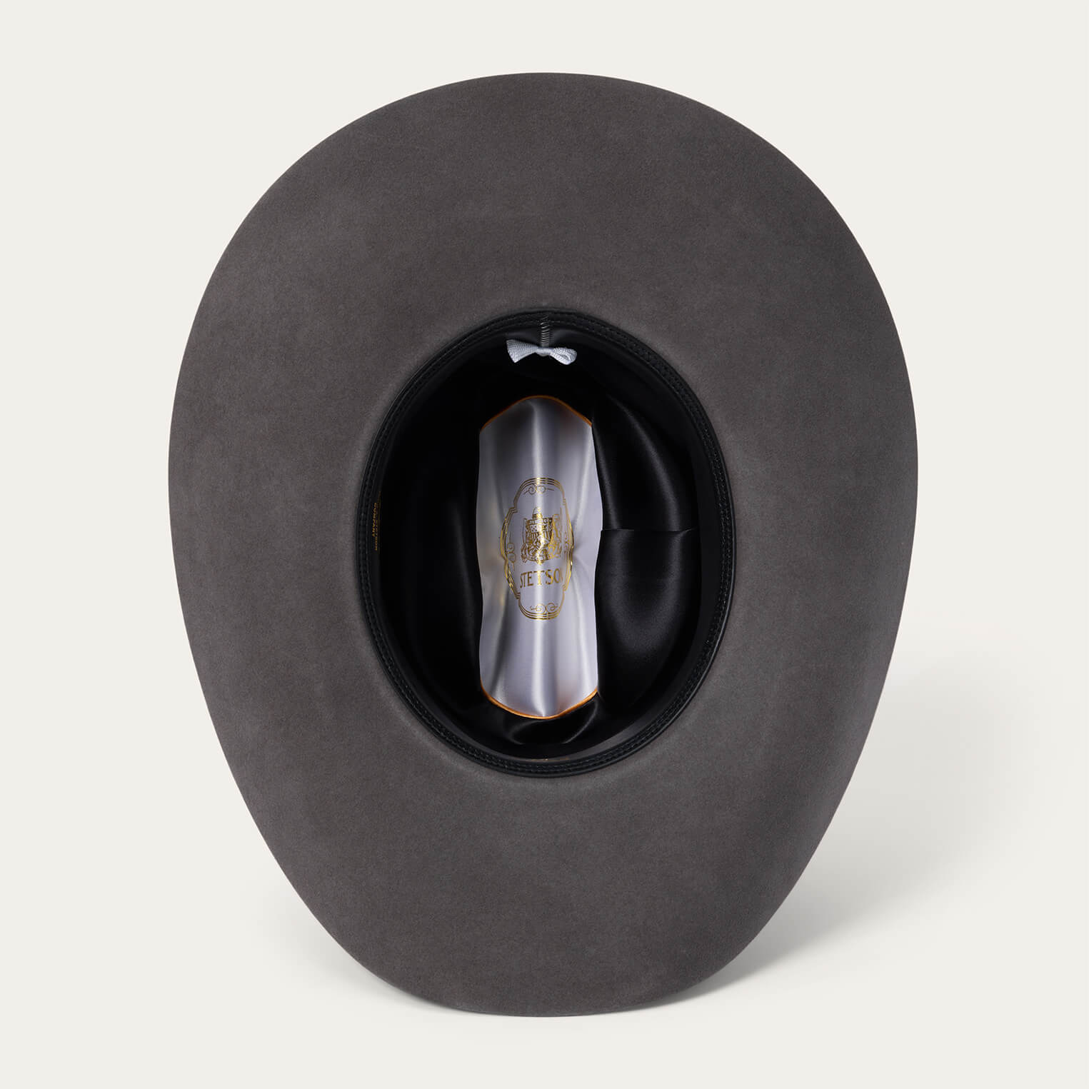 A true Stetson icon, our Shasta combines premier quality and classic Western style in one timeless package. It’s crafted from our proprietary 10X fur felt, which is prized for its durability and elegant feel, and, as with all hats that come out of our factory in Texas, each Shasta is touched by more than 100 sets of hands during production, resulting in a hat that is designed and built to stand the test of time. This edition features a 7242 profile, which translates to a 4 1/4” cattleman crown and 4 1/4” brim. Like all Shastas, it’s finished with a matching self-felt band and three-piece, genuine sterling silver buckle with gold JBS letters—a nod to our founder John B. Stetson, whose trailblazing spirit and commitment to quality live on in everything we make. A handsewn genuine leather sweatband and full satin liner provide a time-tested fit and premium comfort.