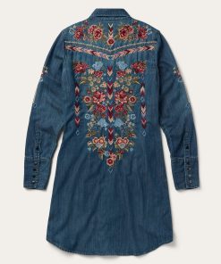 This denim shirt dress makes a statement with its lavish, all-over floral embroidery. It has single point front and back yokes, single point pockets and flaps, five-snap cuffs and a full snap front. It’s crafted from high-quality 100% cotton denim that has been garment washed for extra softness and made to get even more comfortable over time. Whether worn on its own or layered over jeans, it has an easy, flattering fit that allows for freedom of movement.