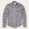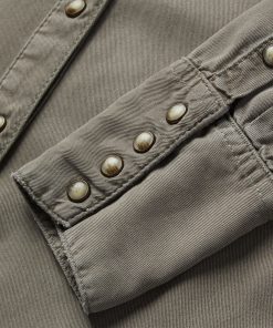 This Western-style boyfriend fit shirt is crafted from durable 100% lyocell denim twill that has been yarn dyed a rich olive tone. A stunning navy and cornflower embroidered floral detail is featured on the traditional Western-style single point curved front and back yokes. Faux pocket flaps, a classic snap front closure and self piping complete this unique, stylish top.