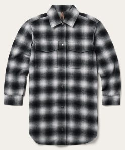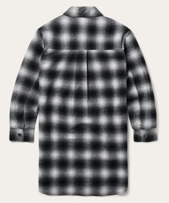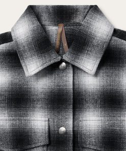 This ombre plaid oversized shirt jacket is crafted from a soft, comfortable high-quality wool blend and makes the perfect versatile layer whenever the weather calls for it. It has a flowing, flattering fit with drop shoulders, large chest patch pockets, side seam pockets and a straight back yoke with inverted box pleats at the back and at the button cuffs.