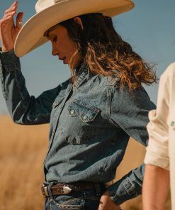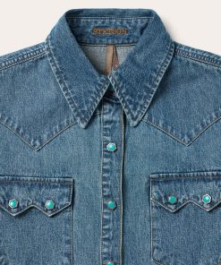 Stetson Women’s Turquoise Snap Western Denim Shirt | Blue