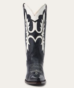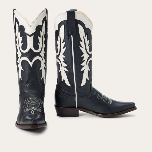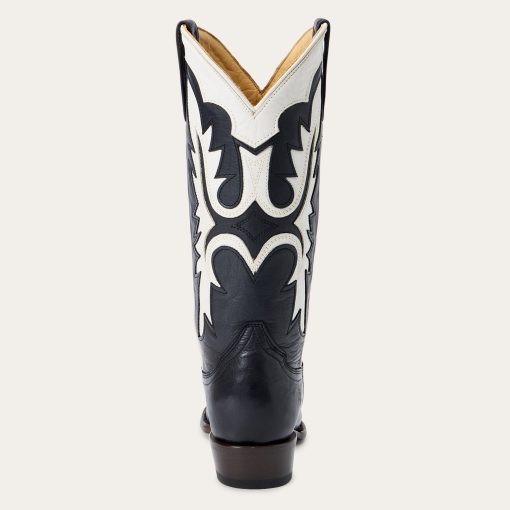 The Cheyenne Boot has a leather vamp and a 13” flame underlay shaft and features a ship toe—a statement-making style—and a stacked leather cowboy heel. Its quality construction includes single welt leather soles, brass nails and handmade lemonwood pegs that will expand and contract with any moisture the boot may encounter. Premium leather lining and a cushioned leather insole ensure heel-to-toe comfort in every step.